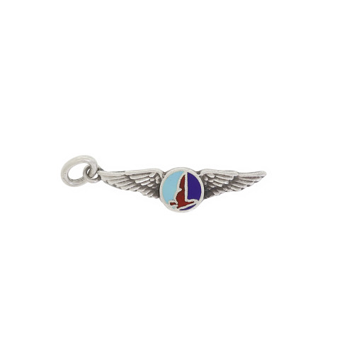 Details and Condition: A little piece of airline history! This vintage Eastern Airline wings charm is small but oh so cute! Made of sterling silver with just enough patina to emphasize its age., it is ready to attach to a bracelet, it features the logo used with few interruptions from 1936 to 1960. The Logo was designed by pin up artist Cardwell Higgins. This piece is not seen very often and will be a wonderful addition to your charm or aviation history collection.