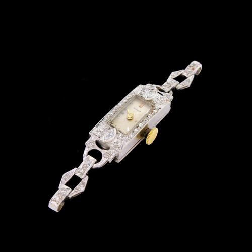 Title: Vtg Art Deco Platinum 38 Diamond Gubelin Watch Case & Mechanism Lots Of Sparkle